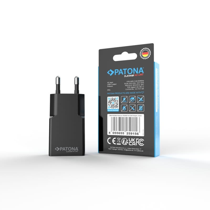 Najważniejsze cechy - PATONA Platinum Ładowarka płaska GaN PD20W 1x USB-C PD3.0 QC3.0 (czarna)