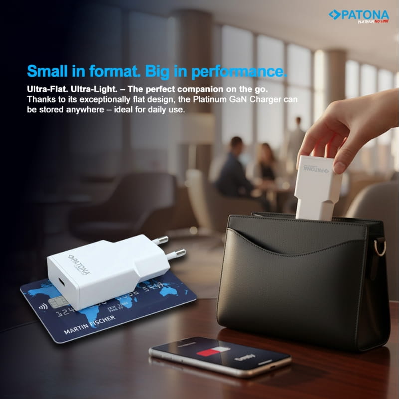 patona platinum ładowarka płaska gan pd20w 1x usb-c pd3.0 qc3.0 (czarna)