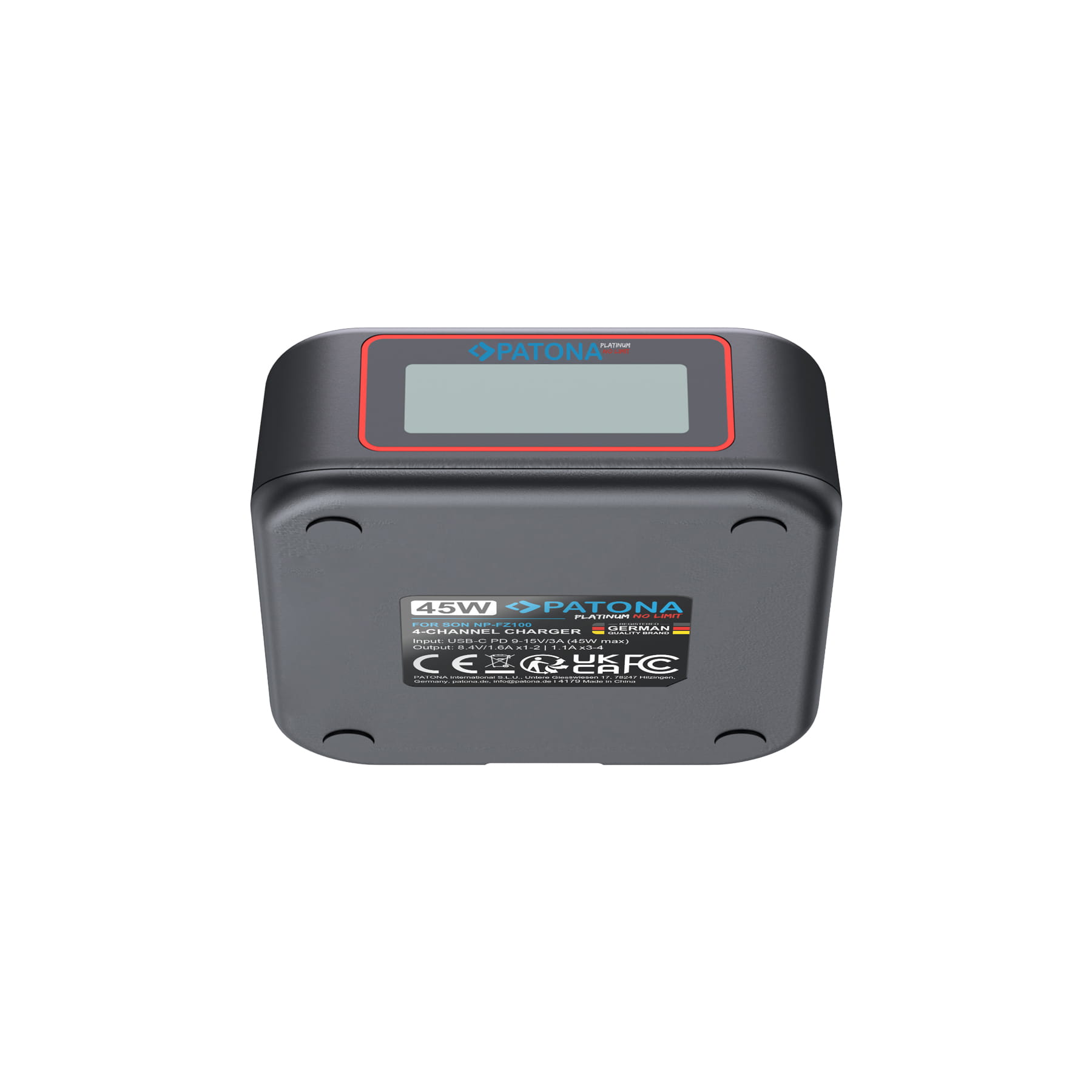 PATONA Platinum 4-Channel Charger to profesjonalne rozwiązanie dla użytkowników akumulatorów Sony NP-FZ100. Umożliwia jednoczesne ładowanie do 4 baterii, a dzięki USB-C z obsługą Power Delivery (PD) i Quick Charge (QC) oraz mocy wejściowej do 45W zapewnia szybkie, stabilne i bezpieczne uzupełnianie energii. Ładowarka inteligentnie rozdziela moc w zależności od liczby włożonych akumulatorów, dzięki czemu ładuje możliwie najszybciej – zarówno jedną, jak i cztery baterie naraz.
