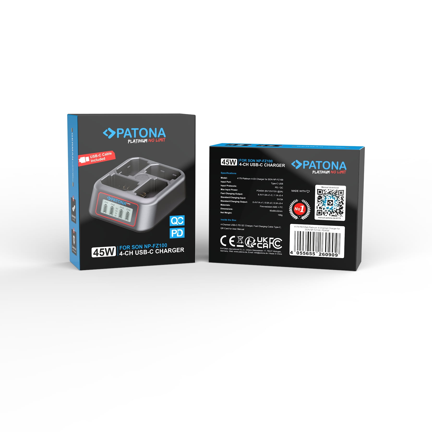 patona platinum szybka ładowarka 4-kanałowa usb-c pd/qc do sony np-fz100 (45w)