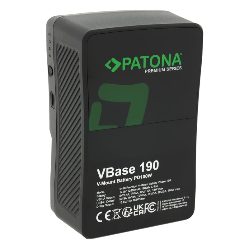 Specyfikacja techniczna - PATONA Premium Akumulator V-Mount VBase 190 PD100 190Wh USB-C USB-A D-Tap