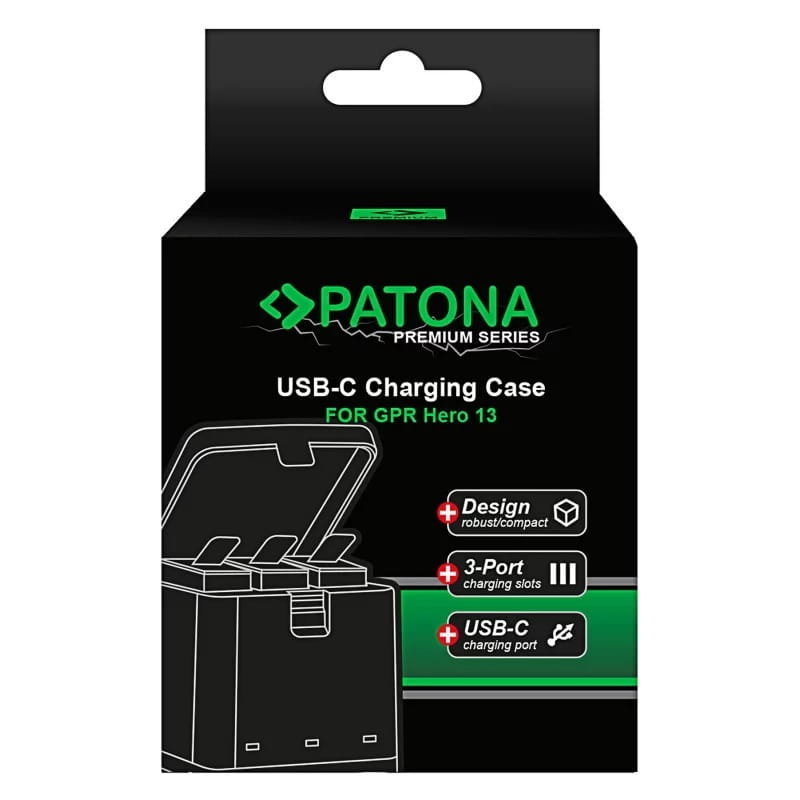 Najważniejsze cechy - PATONA Premium potrójna ładowarka do GoPro Hero 13 z kablem USB-C