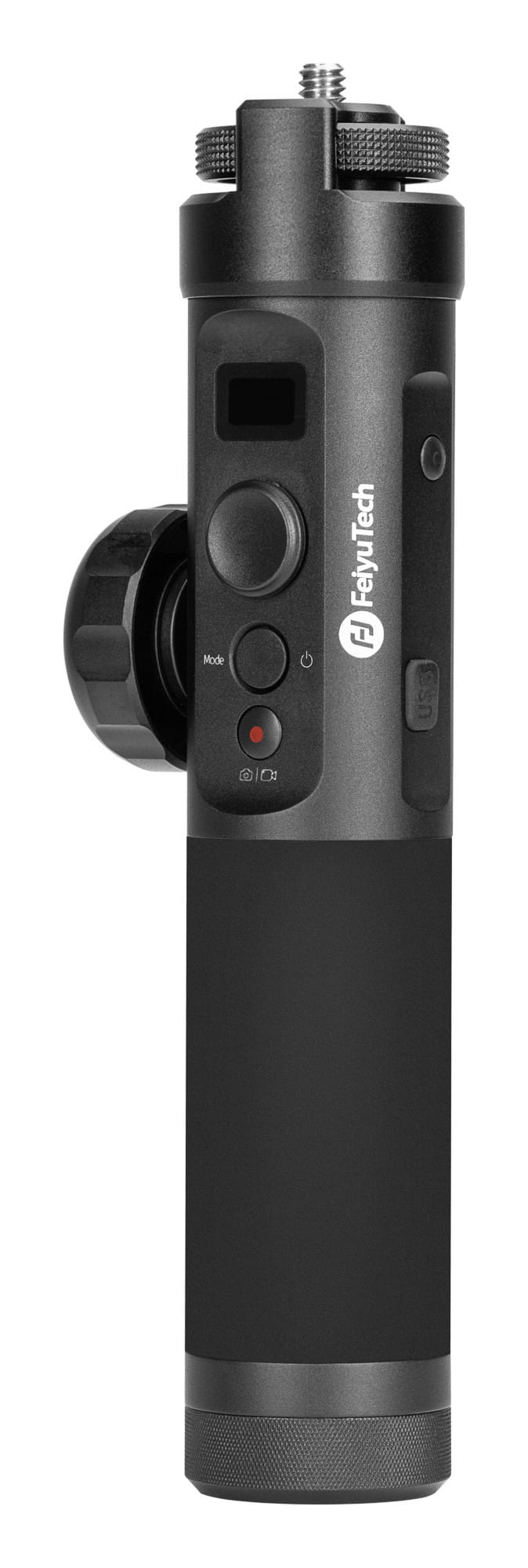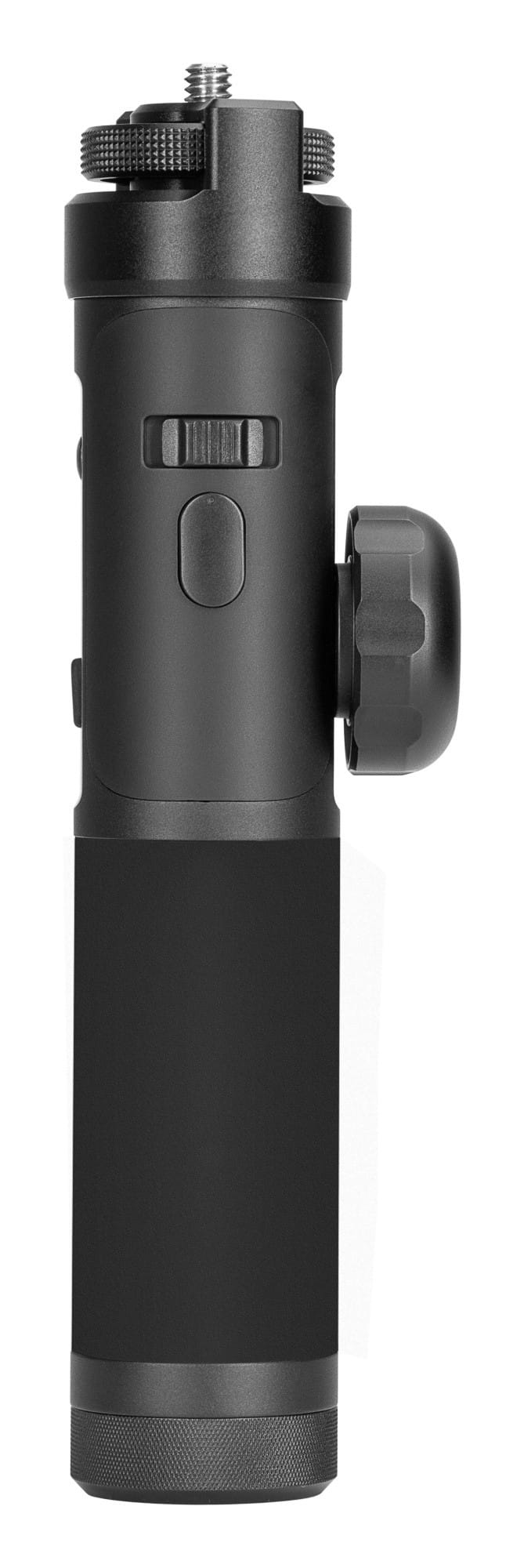 Pilot wyposażony został w dwa standardowe mocowania statywowe, dzięki którym możesz zamocować na nim dowolne akcesorium. Szczególnie praktycznym dodatkiem może być monitor podglądowy lub smartfon z zainstalowaną aplikacją do sterowania aparatem (jeżeli aparat umożliwia taką opcję). W zestawie z pilotem znajdziesz uchwyt do telefonu. Tryb sterowania ruchami w połączeniu z podglądem na żywo sprawdza się znakomicie, kiedy gimbal znajduje się na monopodzie, statywie lub kranie, a dostęp do niego jest utrudniony.