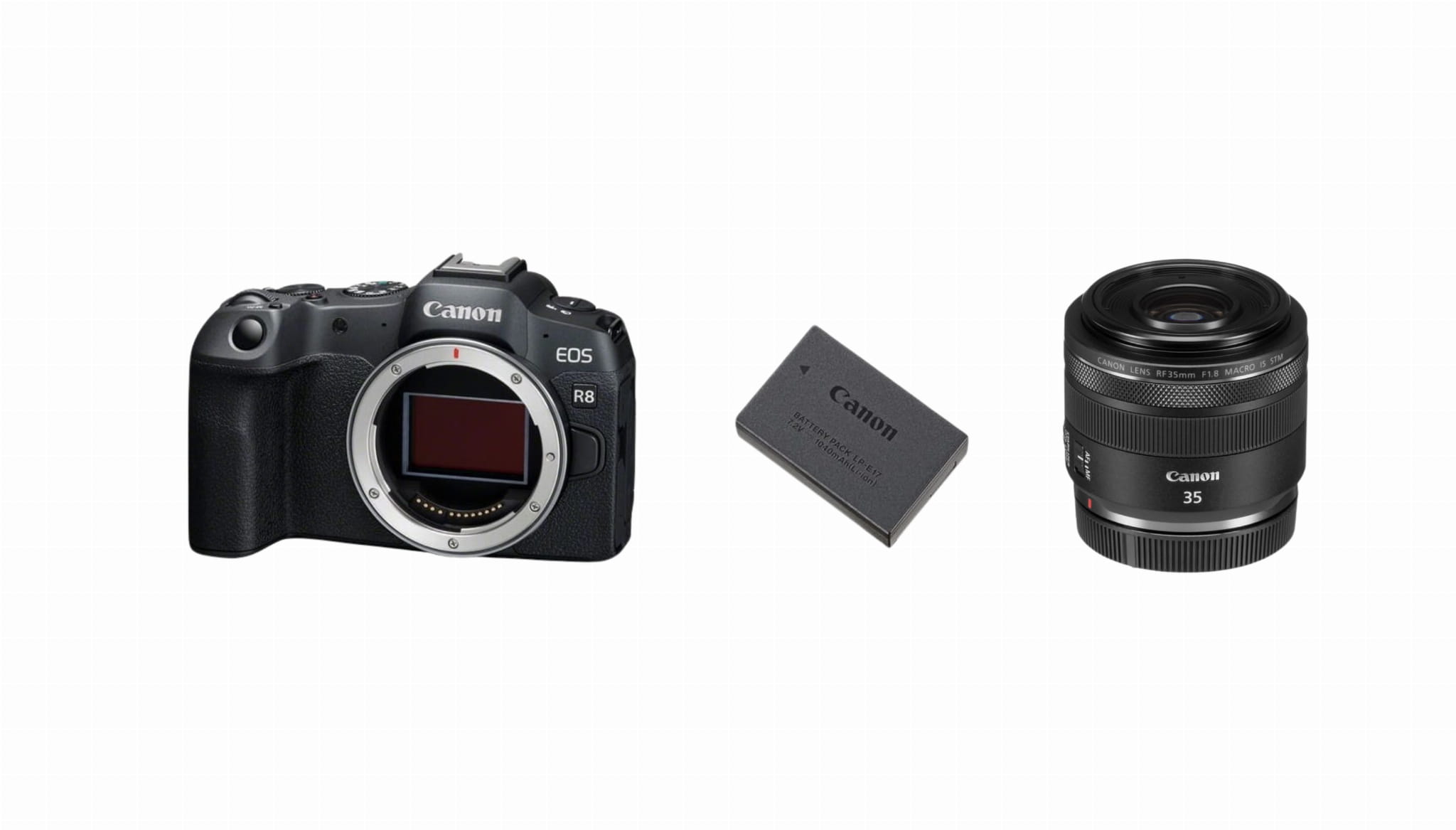 Aparat Canon EOS R8 + dodatkowy akumulator LP-E17 + RF 35mm f/1.8 IS Macro STM