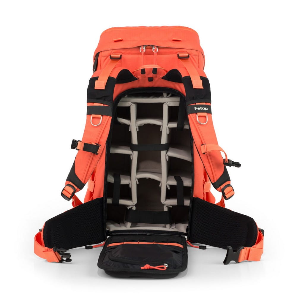 F-STOP Tilopa 50l pomarańczowy to wszechstronny i najbardziej wytrzymały plecak z górskiej serii. Sprawdza się zarówno na wielodniowych wycieczkach, jak i krótkich wyjazdach. Plecak posiada 4 wewnętrzne punkty przyłączeniowe ICU, dzięki którym można dopasować wnętrze do wybranego sprzętu i potrzeb. Mimo dużej pojemności (50l) waga plecaka to jedynie 1,9 kg. Wewnętrzna aluminiowa rama oraz ergonomiczny pas z materiału EVA zapewnia całodniowe wsparcie i komfort noszenia. Plecak posiada krótkie pasy kompresyjne, dzięki którym można zmniejszyć jego objętość, gdy nie jest w pełni zapakowany. Pasy na ramiona w kształcie litery H i punkty mocowania sprzętu do wspinaczki sprawiają, że F-STOP Tilopa jest odpowiednia dla najbardziej wymagających profesjonalistów pracujących w górskim terenie. ICU (INTERNAL CAMERA UNITS) zapewnia ochronę aparatu i wartościowych przedmiotów oraz ułatwia organizację wewnątrz plecaka. Wykonane z  wytrzymałej piankowej wyściółki i rzepów Velcro® gwarantują bezpieczeństwo sprzętu.