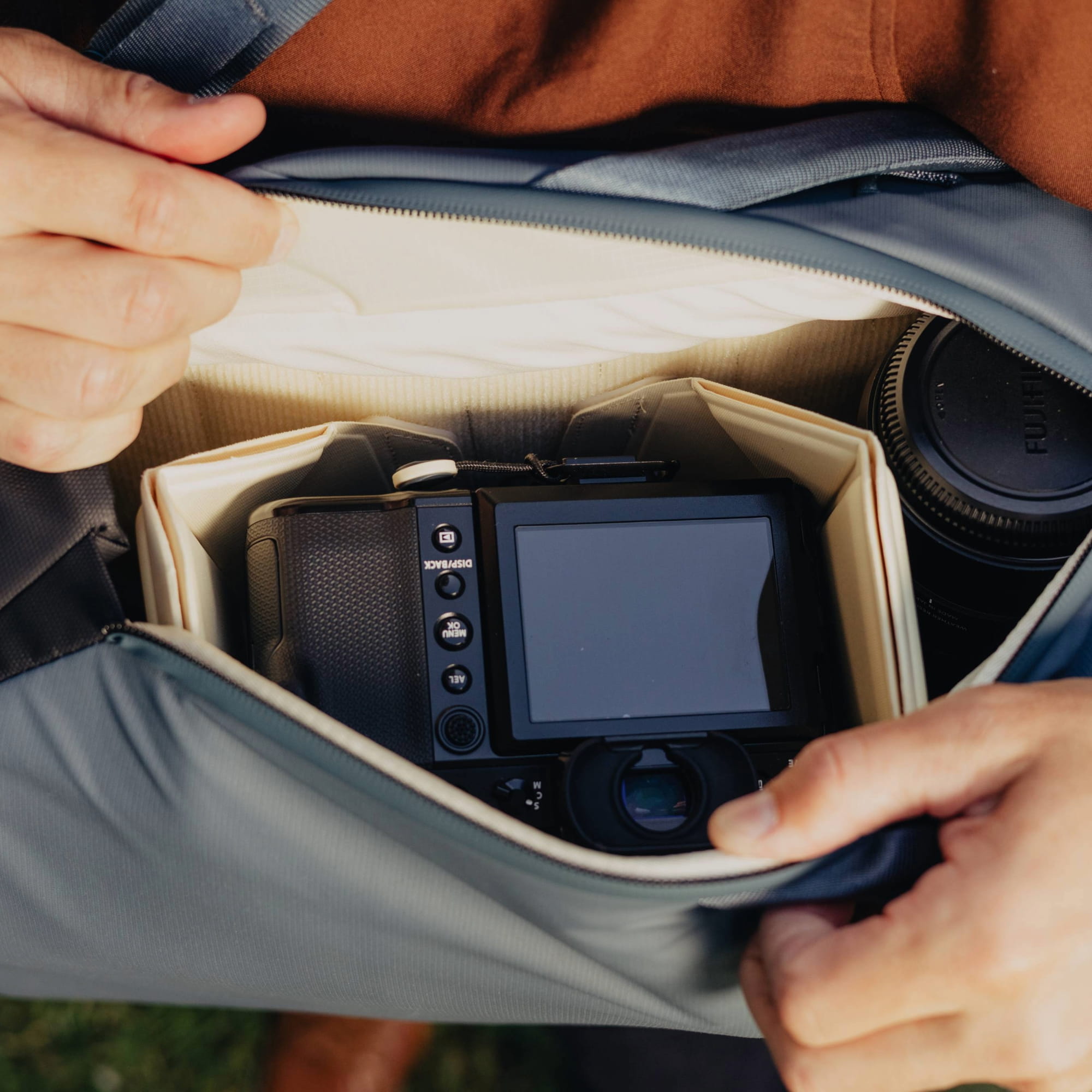 Plecak Peak Design Everyday Totepack 20L zapewnia wyjątkową wygodę użytkowania dzięki szerokiemu dostępowi do wnętrza poprzez górny zamek błyskawiczny, zabezpieczony wodoodporną osłoną. Dwa boczne zamki umożliwiają szybki dostęp do aparatu, butelki z wodą czy innych często używanych przedmiotów. Zewnętrzna, rozciągliwa kieszeń pozwala na przechowywanie drobnych przedmiotów, a wewnętrzne przegrody typu FlexFold pozwalają na personalizację wnętrza, zapewniając skuteczną ochronę dla transportowanych przedmiotów.