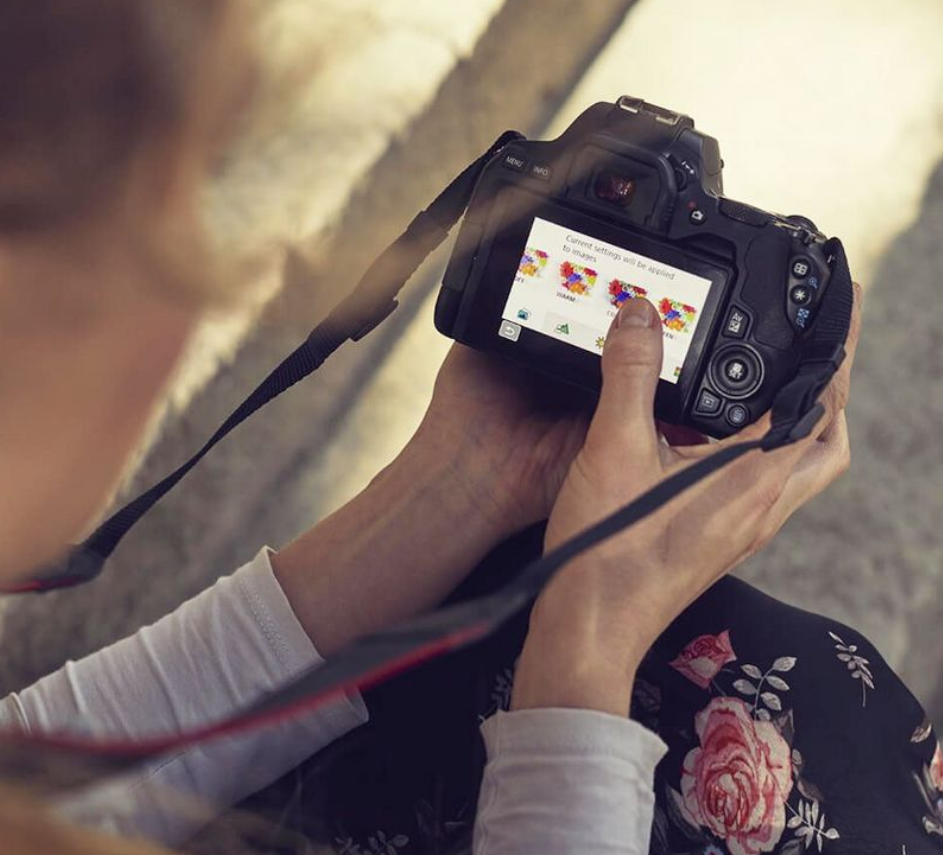Twoi klienci docenią łatwość fotografowania aparatem EOS 250D, a także interfejs z przewodnikiem i tryb twórczego wspomagania, który pozwoli im uwolnić pokłady kreatywności. Odchylany ekran ułatwia pracę pod nietypowym kątem.