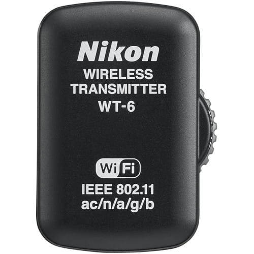 Przekaźnik Nikon WT-6 jest mocowany do złącza interfejsu aparatu i zasilany z jego korpusu. Obsługuje tryby komunikacji punktu dostępowego, HTTP i FTP oraz umożliwia jednoczesne zwolnienie spustu w kilku aparatach. Korzystając z trybu HTTP lub z komputera z zainstalowanym programem Nikon Camera Control Pro 2, można zdalnie sterować ustawieniami aparatu i wyświetlać podgląd na żywo. Tryb HTTP pozwala korzystać z dowolnej przeglądarki internetowej, w tym również na urządzeniach inteligentnych, w celu zdalnej obsługi za pośrednictwem połączenia bezprzewodowego lub ethernetowego.