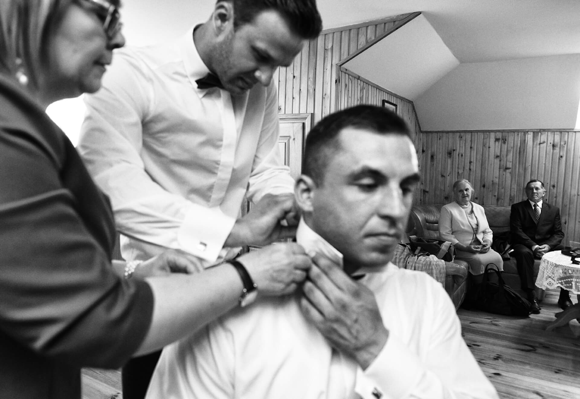 Kurs na pilota drona, na którym poznaję Maćka - prawie dwumetrowego kolosa o gołębim sercu. Niespełna rok później robię zdjęcia na jego ślubie. Przygotowania, kościół, sala, mnóstwo gości. Oddzielnie sesja w plenerze. Emocje, radość, wzruszenie. Staram się być niewidoczny, nieinwazyjnie utrwalam wszystkie ważne i piękne momenty, żeby - kiedy już emocje opadną – mogli to sobie wszystko odtworzyć i przeżyć ponownie.
