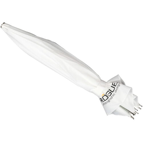 Parasol Rogue 32" Shoot Thru Umbrella to półprzezroczysty, biały parasol, którego można używać na głównym lub dodatkowym świetle, aby stworzyć miękkie światło wypełniające, światło krawędziowe lub światło tła. Po złożeniu mierzy 51 cm długości, dzięki czemu zmieści się w bagażu podręcznym.