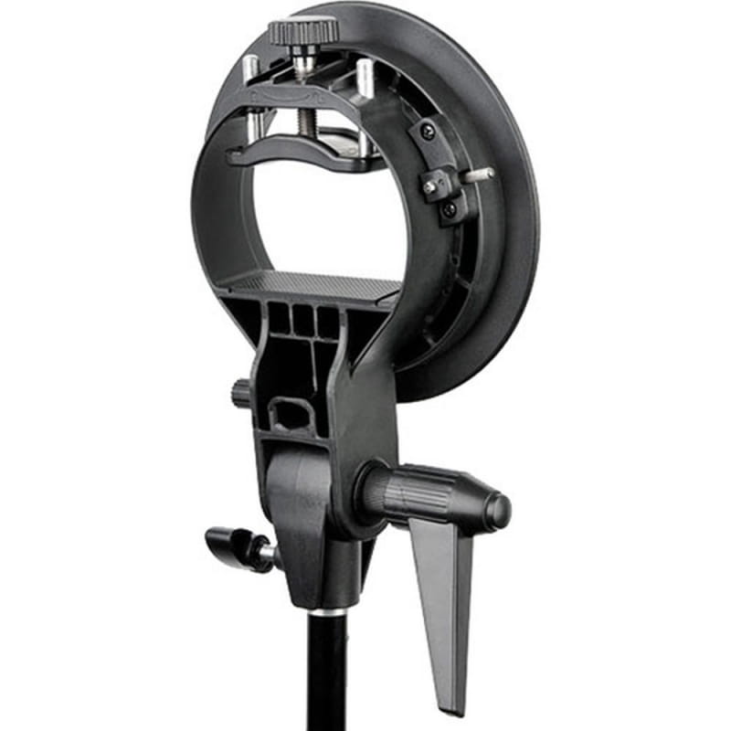 • Uchwyt montażowy typu S, który może posłużyć do montażu większość lamp błyskowych do akcesoriów Bowens