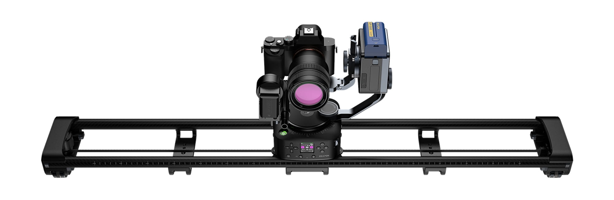 Zeapon Axis 120 to wszechstronny slider o długości 120 cm, który świetnie sprawdzi się wśród twórców video poszukujących precyzji i wszechstronności. Wykonany z wykorzystaniem wysokiej jakości włókna węglowego, łączy w sobie lekkość i wytrzymałość. Jego maksymalny udźwig to aż 12 kg. Elektryczny moduł napędowy zapewnia nie tylko ruch w poziomie, ale także obrót aparatu lub kamery w zakresie 360º (oś "pan"). Zintegrowany ekran LCD i bezpłatna aplikacja Zeapon Lab umożliwiają intuicyjną obsługę, a także możliwość programowania ruchów. Urządzenie może być zasilanie za pomocą akumulatorów NP-F, a także z wykorzystaniem power banku lub ładowarki (port USB-C). W zestawie nie zabrakło solidnej torby transportowej, wsporników statywowych oraz przydatnych akcesoriów i narzędzi.