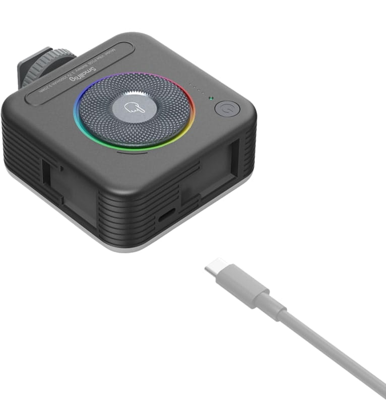 Model SmallRig 4055 to przenośne, modne mini światło LED full-color składa się ze 108 wysokiej jakości koralików lampowych, w tym 28 sztuk koralików lampowych RGB, 40+40 sztuk koralików lampowych zimnych i ciepłych, CRI ≥ 95, zakres temperatury barwowej 2700K-6500K. To małe światło wypełniające ma wbudowaną baterię litową 2500mAh, która jest ładowana za pomocą dołączonego kabla do ładowania USB Typu-C.