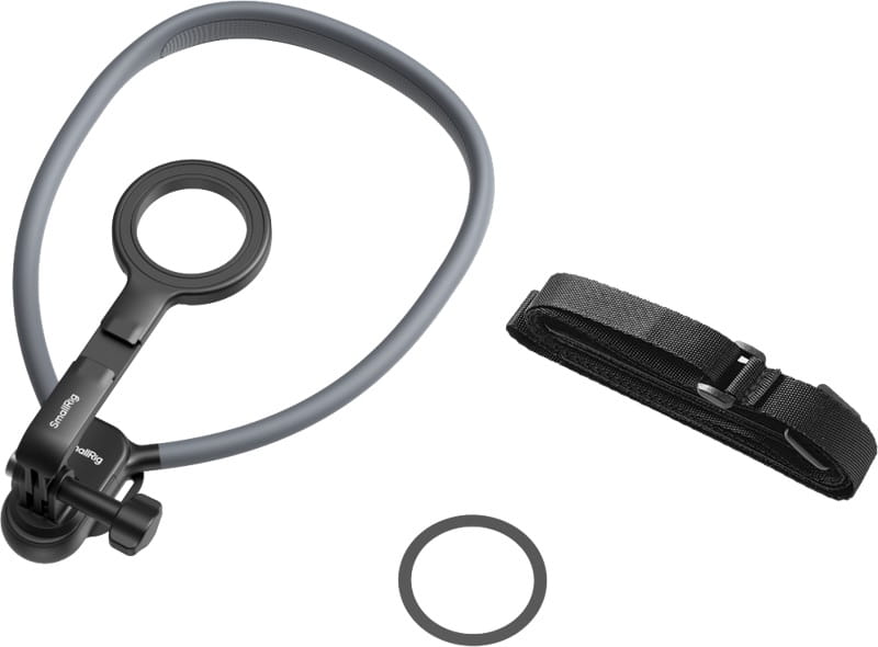 Uchwyt na szyję posiada uniwersalne 2-bolcowe mocowanie do kamer sportowych i magnetyczny uchwyt na telefon do natychmiastowego podłączenia iPhone'a. Uchwyt na telefon jest wyposażony w 17 silnych magnesów N52 dla bezpiecznego trzymania, wraz z dodatkowym magnetycznym pierścieniem adaptera dla urządzeń z systemem Android i innych niż MagSafe.Gdy nie jest używany do smartfonów, uchwyt na szyję może bezpośrednio pomieścić kamery akcji.