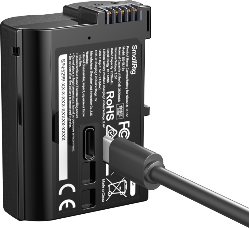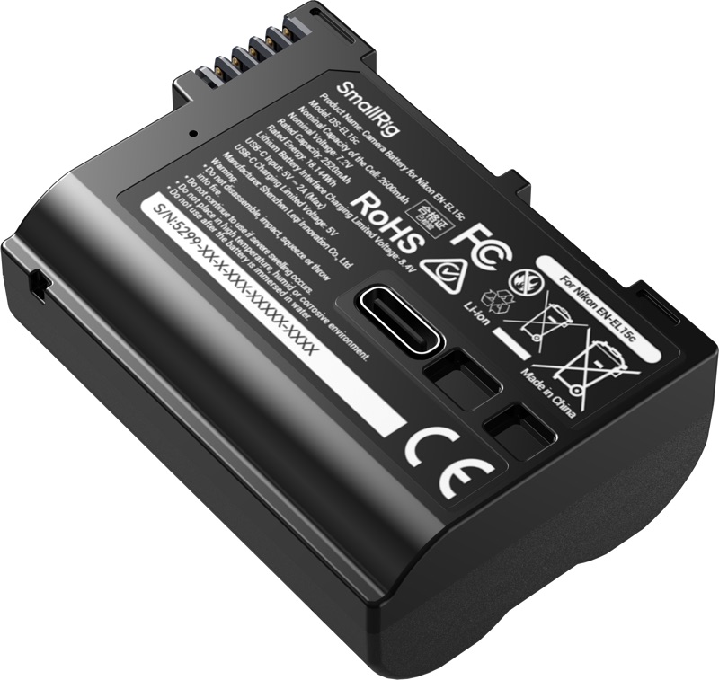Specyfikacja techniczna - SmallRig 5299 - zamiennik, akumulator Nikon EN-EL15c z portem USB-C i wskaźnikiem naładowania do baterii, 2600mAh