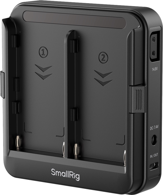 Zaprojektowany w celu zapewnienia ciągłego zasilania aparatów bezlusterkowych, monitorów i innych urządzeń wykorzystujących akumulatory serii NP-F. Płytkę tę można zamontować za pomocą płytki V-mount lub dolnych otworów gwintowanych 1/4"-20. Pomieści ona jeden lub dwa akumulatory NP-F, które zasilają sprzęt. W przypadku zainstalowania dwóch akumulatorów funkcja hot-swap umożliwia wymianę jednego akumulatora bez wyłączania podłączonych urządzeń, zapewniając nieprzerwane zasilanie (UPS).