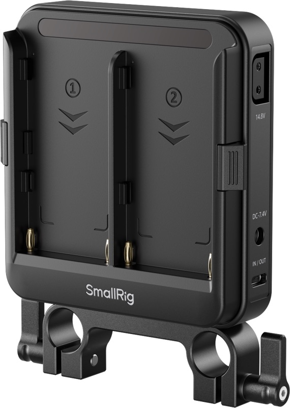 smallrig 5537 - adapter / płytka na 2x akumulator np-f z zaciskiem na 2x pręt 15mm lws (wsparcie ups, usb-c, dc 5521, d-tap)
