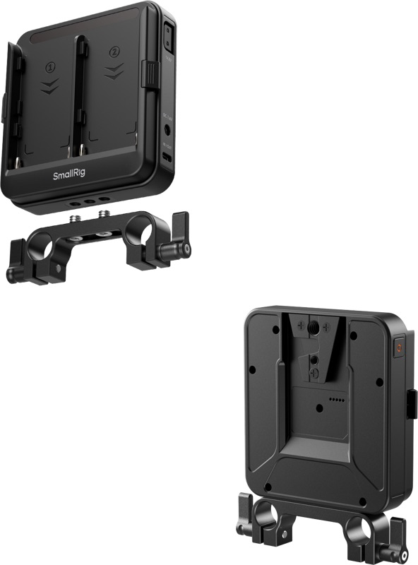 Specyfikacja techniczna - SmallRig 5537 - adapter / płytka na 2x akumulator NP-F z zaciskiem na 2x pręt 15mm LWS (wsparcie UPS, USB-C, DC 5521, D-Tap)
