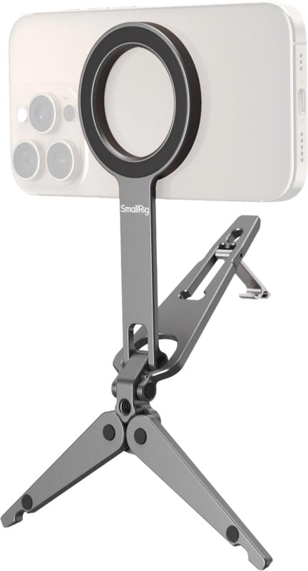 Oferuje kompleksowe rozwiązanie do ręcznego i stacjonarnego filmowania za pomocą telefonów komórkowych. Dwustronne mocowanie magnetyczne umożliwia szybkie przełączanie między konfiguracjami przedniej i tylnej kamery, a regulowany kąt nachylenia 270° zapewnia wszechstronne kąty fotografowania - od niskiego kąta po perspektywę z góry.
