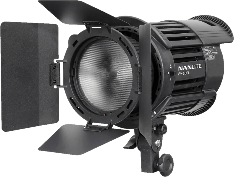 Soczewka Fresnela CN-18X dla P-100 i P-200 LED Light firmy NanLite umożliwia skupienie wiązki światła w zakresie od 12 do 35 °. W celu dalszej kontroli belki zastosowano czterokierunkowe wrota.