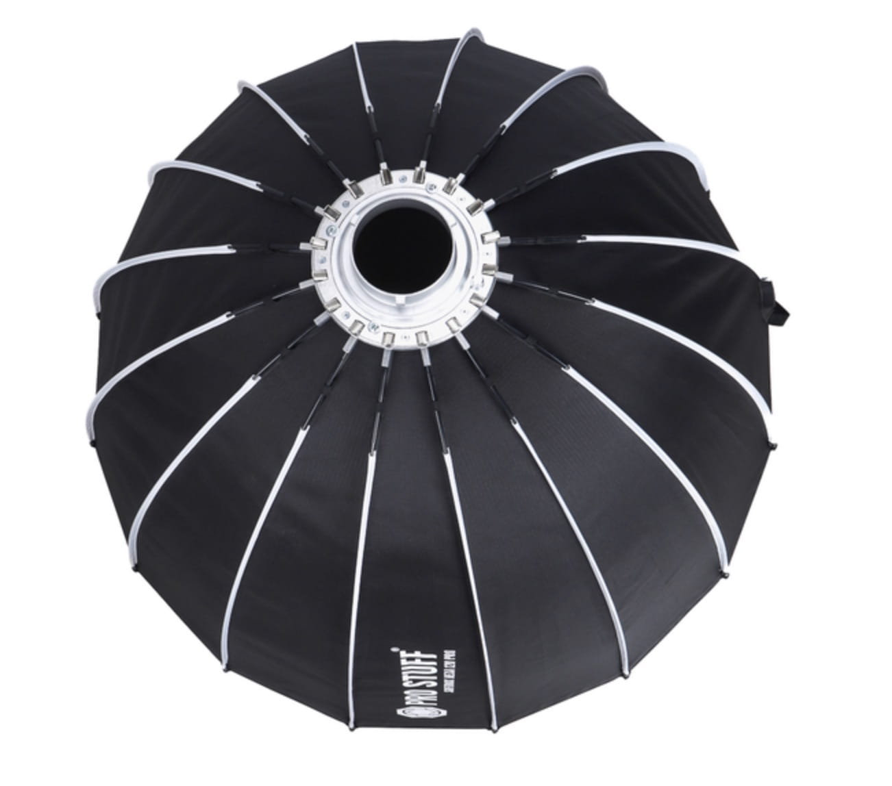 Softbox Hexa PRO wyposażono w metalowy adapter typu Bowens, który zapewnia pewne i stabilne mocowanie do niemal każdej dostępnej na rynku lampy. Głęboki softbox hexagonalny z nowym mechanizm szybkiego rozkładania na kliknięcie. Konstrukcja dysku szybkiego uwalniania sprawia, że jest bardzo łatwy i szybki w montażu. 16 prętów wykonanych z metalu tworzy rewolucyjną konstrukcję ożebrowania zewnętrznego, dzięki czemu jest nie tylko łatwy w użytkowaniu, ale także w przechowywaniu – złożony nie zajmuje dużo miejsca.