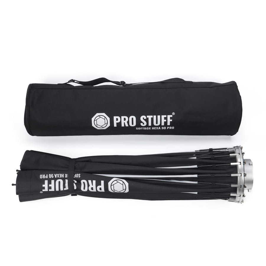 Profesjonalny softbox PRO STUFF Hexa PRO z mocowaniem typu Bowens do zastosowań w studiu fotograficznym. Prezentowany model pozwala w sposób szczegółowy osiągnąć naturalne odwzorowanie fotografowanego planu, a także operować kontrastami i naświetleniem tak, by uzyskać możliwie najlepsze efekty.