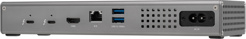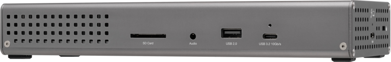 - Łatwiej: Wbudowany zasilacz eliminuje kłopoty z ciężkim zasilaczem, umożliwiając jednocześnie więcej przepływów pracy niż stacje dokujące zasilane z magistrali.