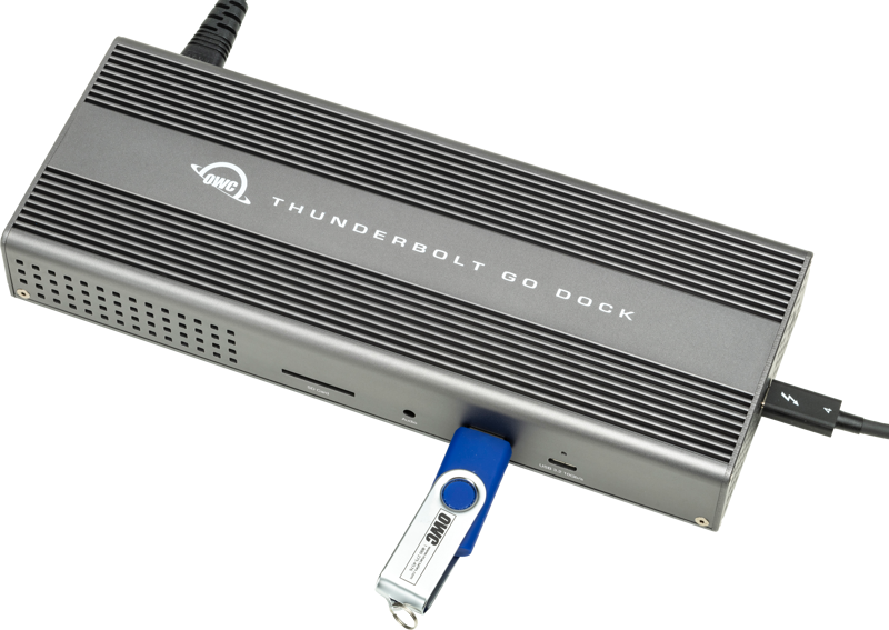 Dzięki stacji dokującej OWC Thunderbolt Go Dock z łatwością podłączysz wszystko, czego potrzebujesz w miejscu, które nazywasz przestrzenią roboczą. Pożegnaj się z ciężkim, nieporęcznym zasilaczem, który Cię spowalnia. Albo z zasilaną z magistrali mini stacją dokującą, która nie ma wszystkich potrzebnych portów. Wystarczy podłączyć kabel zasilający tej pierwszej na świecie w pełni funkcjonalnej stacji dokującej Thunderbolt z wbudowanym zasilaczem do standardowego gniazdka w kawiarniach, na lotniskach, w pojazdach, wózkach do produkcji wideo i innych miejscach, aby 11 portów łączności było na wyciągnięcie ręki.