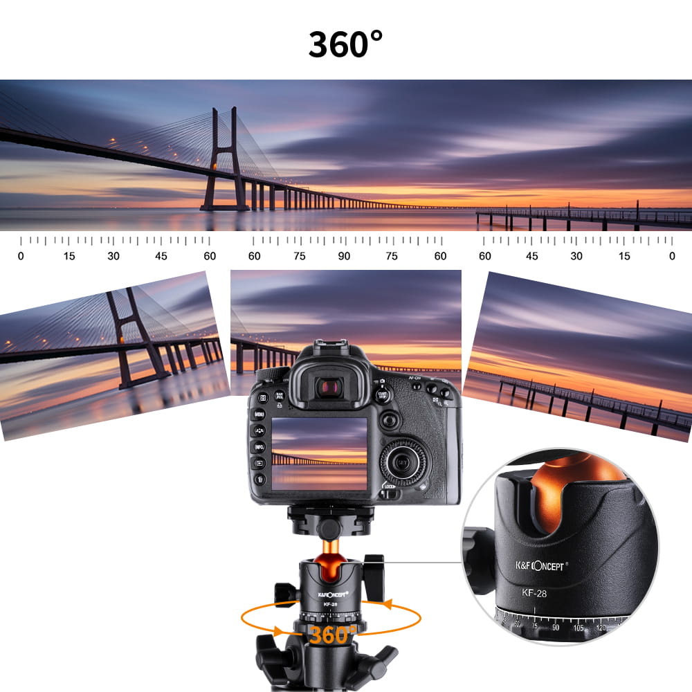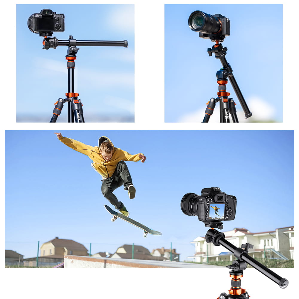 Zaawansowany i funkcjonalny statyw fotograficzny K&F Concept K234A6, oferujący wyjątkowo duży zakres pracy od 60 do 230 cm, dodatkowe ramię boczne oraz możliwość odkręcenia jednej z nóżek i wykorzystywania jej jako monopodu. Wykonany ze stopu aluminium. Posiada głowicę kulową zakończoną szybkozłączką w standardzie arca swiss z gwintem 1/4''. Maksymalny udźwig statywu wynosi 10 kg.