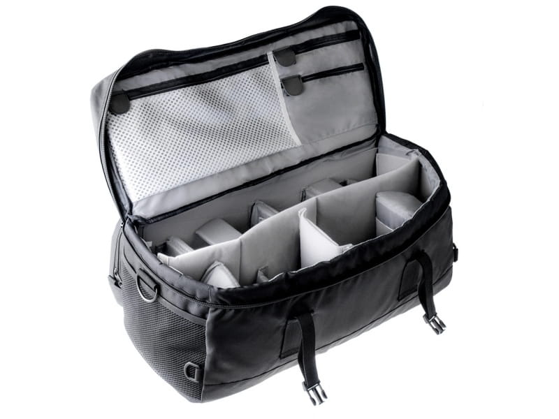 Komora główna, dzięki przestawialnym przegrodom, może być dowolnie konfigurowana i dzielona nawet na 18 części. Dowolna konfiguracja zapewnia optymalne wykorzystanie przestrzeni oraz perfekcyjne dopasowanie do sprzętu i potrzeb użytkownika. Torba pomieści 2-3 korpusy, do 12 obiektywów, lampy błyskowe oraz szereg innych akcesoriów takich jak: aparat kompaktowy, kamera, filtry, ładowarki, piloty, akumulatory, czytniki itp.