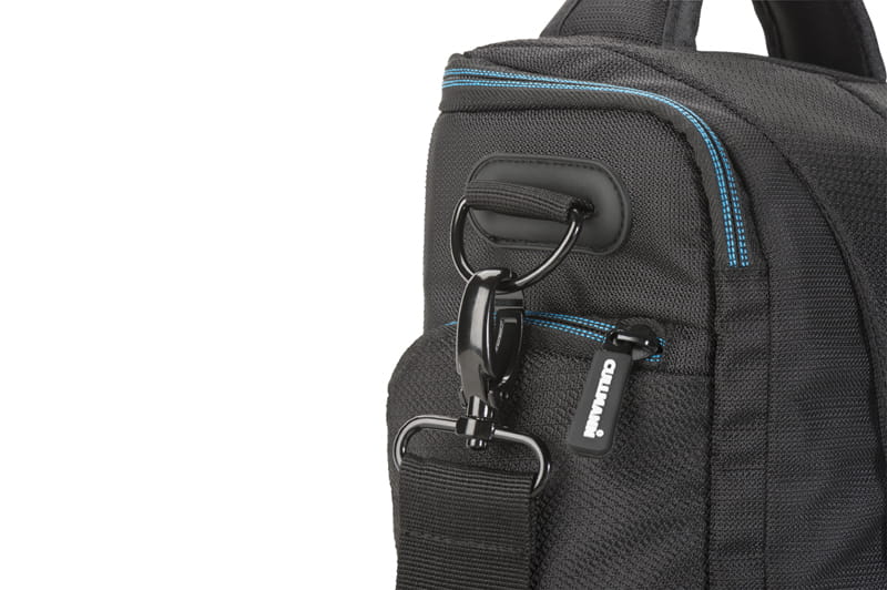• Pasek na ramię z wytrzymałymi haczykowatymi zatrzaskami i metalowymi oczkami