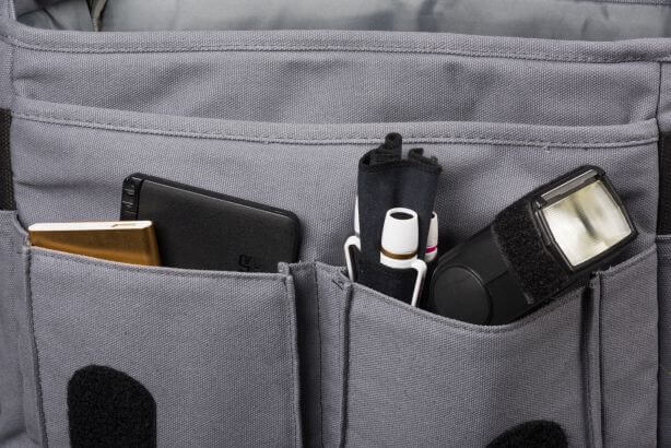 W jej wnętrzu zmieści się zestaw zawierający lustrzankę małoobrazkową, dwa obiektywy (24-70/2.8+70-200/2.8) oraz szereg mniejszych akcesoriów. Kieszenie umieszczone na przedniej ściance pomieszczą pojemnik z kartami pamięci, telefon, wizytownik, czytnik kart i inne mniejsze przedmioty. Wewnątrz głównej komory umiejscowiona jest kieszeń na tablet lub małych rozmiarów komputer (do 15.6”). Boczne płaskie kieszenie podczas fotografowania idealnie sprawdzą się jako miejsce do schowania dekli obiektywów. Aparat można łatwo i szybko wydobyć z wnętrza torby dzięki szerokiej klapie zapinanej na rzepy. Dostarczany w zestawie pokrowiec przeciwdeszczowy zapewnia lepszą ochronę przed deszczem oraz zabrudzeniami.