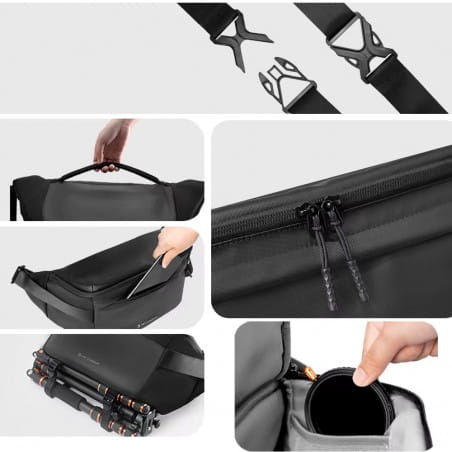 K&F Concept Nature Wander Sling Bag to funkcjonalna torba fotograficzna o pojemności 10 l. Wykonana z wodoodpornego nylonu, skutecznie chroni aparat przed deszczem, kurzem i przypadkowymi zabrudzeniami, zachowując przy tym zwartą i wygodną dla użytkownika formę. Pozwala bezpiecznie spakować aparat, jeden lub dwa obiektywy oraz dodatkowe akcesoria.
