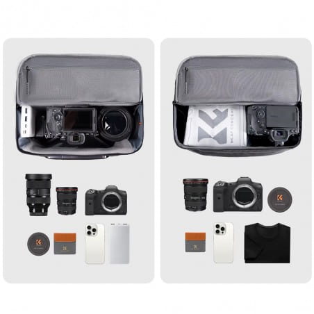 Jednokomorowe wnętrze otrzymało wyjmowaną, modułową przegrodę. Można w kilka sekund dopasować je do konkretnej konfiguracji sprzętu - od typowego zestawu fotograficznego, przez zestaw akcesoriów niezbędnych dla twórcy cyfrowego, aż po małego drona z kontrolerem. Szeroka klapa umożliwia natychmiastowy dostęp do sprzętu. Dodatkowe przegródki wewnętrze oraz płaska kieszeń zewnętrzna ułatwią przechowywanie baterii, kart pamięci czy rzeczy osobistych - telefonu i dokumentów.