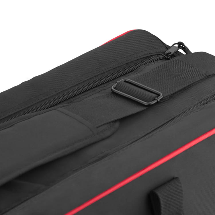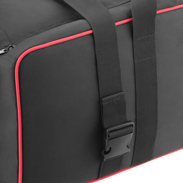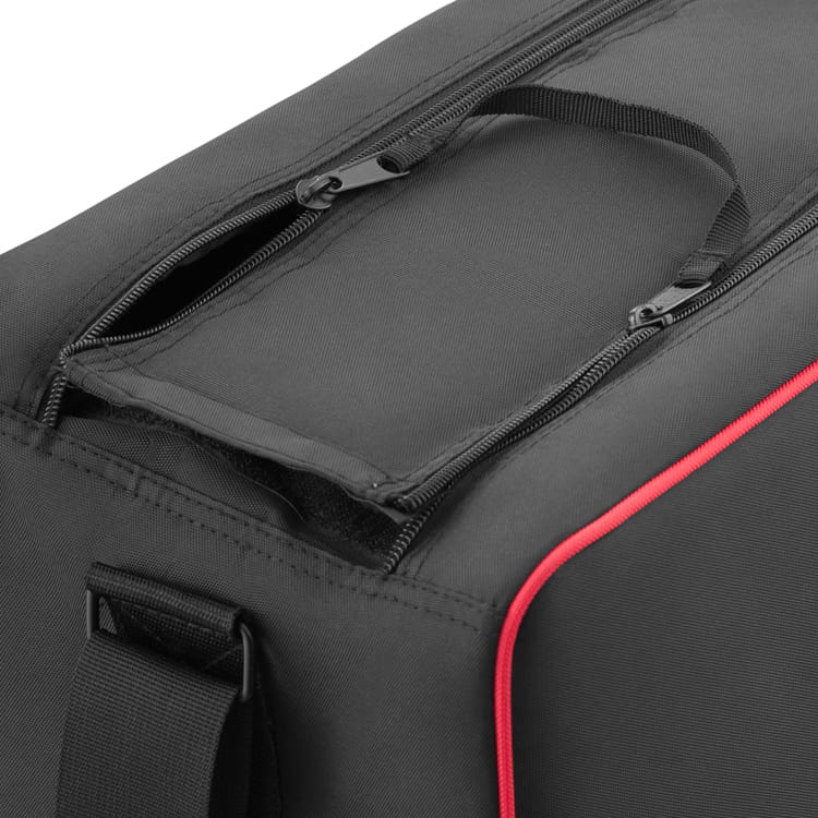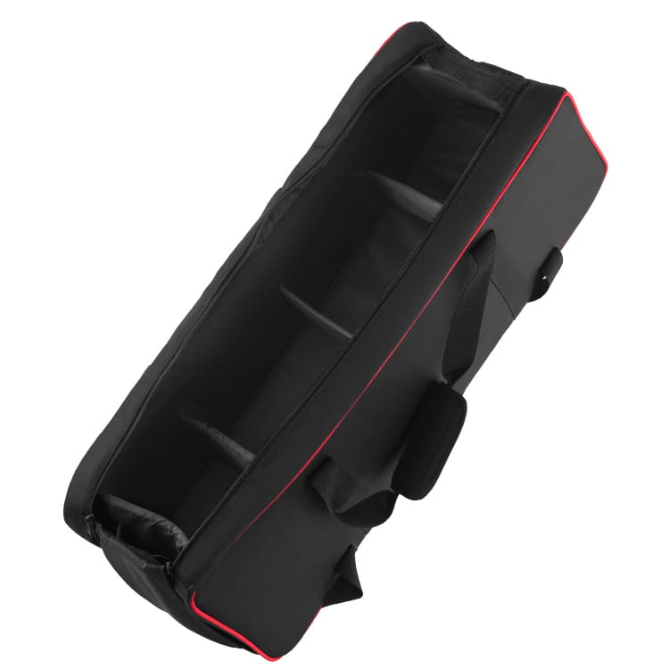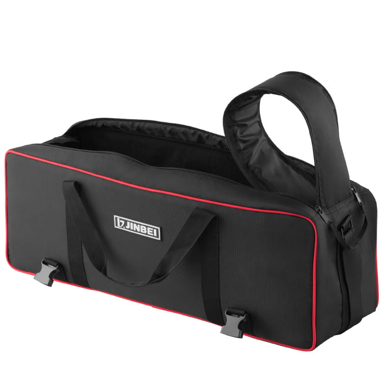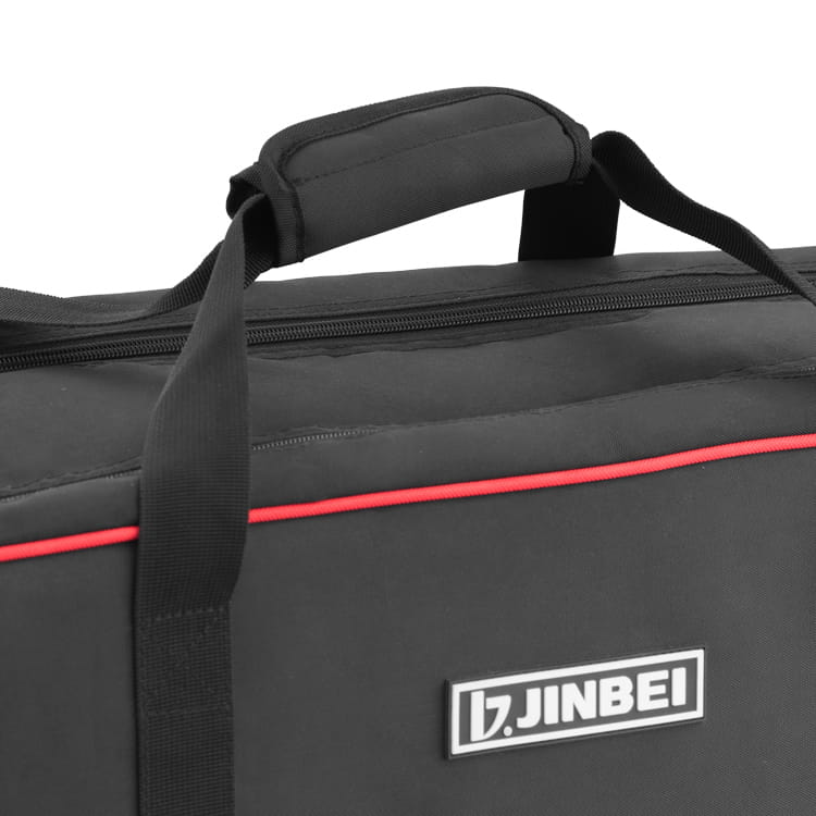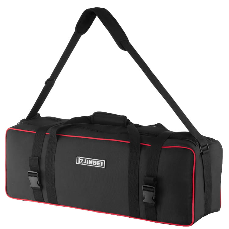 Torba Jinbei L-82 przeznaczona do przechowywania i przenoszenia sprzętu studyjnego. Kostrukcja ze ściankami wypełnionymi warstwą pianki tłumiącej wstrząsy odpowiednio zabezpieczy przenoszony sprzęt. Dostęp do wnętrza chroniony jest materiałowym wiekiem zamykanym na równolegle poprowadzony suwak. Dodatkowo całość może być zabezpieczona dwoma pasami z zatrzaskiem i ściągaczem.