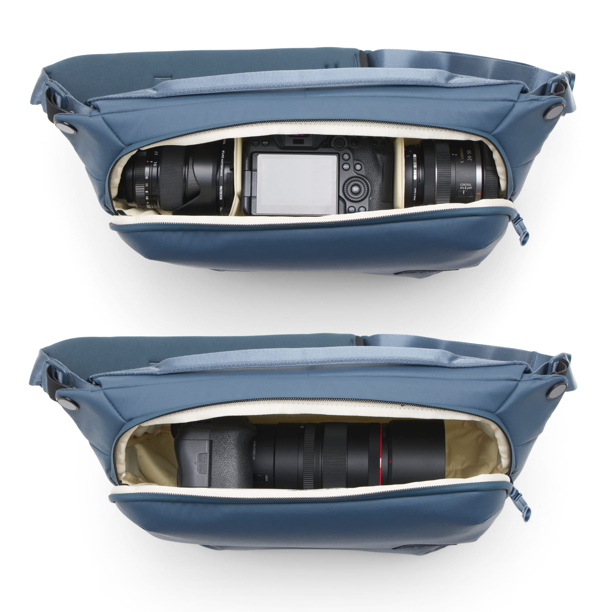 Zastanawiasz się, który rozmiar wybrać? Torba o pojemności 3L została zaprojektowana dla jednego bezlusterkowca/obiektywu. Torba 6L może pomieścić lustrzankę cyfrową. Torba 10L pomieści mały zestaw i jest idealną minimalistyczną torbą na laptopa 13”.