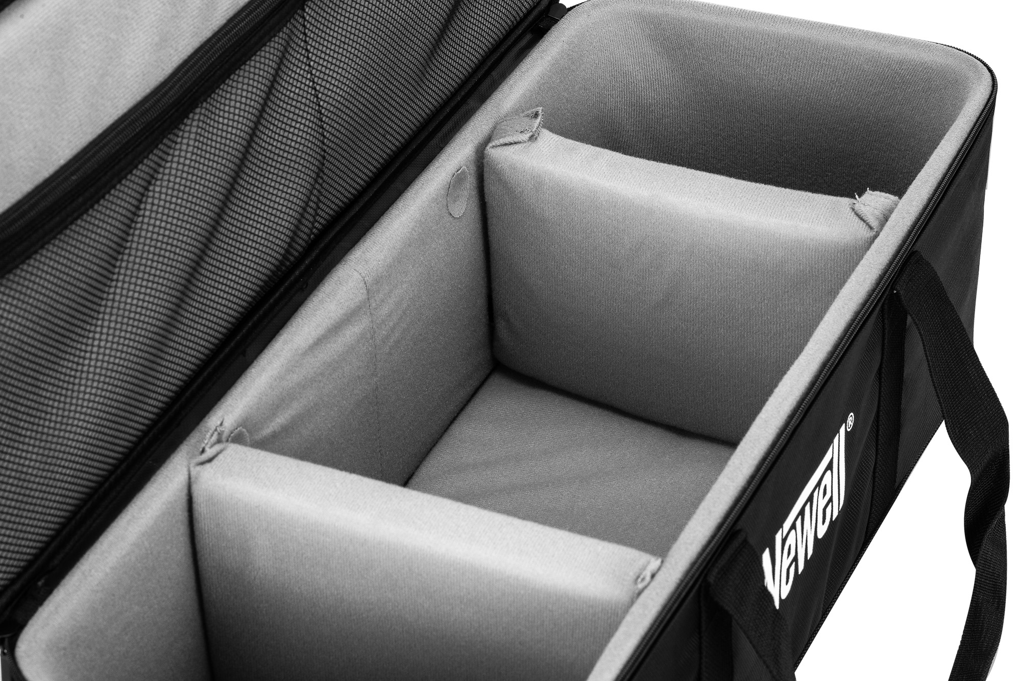 Torba transportowa Newell wyróżnia się solidną, sztywną konstrukcją, która skutecznie ochroni Twój sprzęt nawet w trudnych warunkach. Gruba warstwa pianki tworzy wewnętrzny stelaż, dzięki czemu całość zachowuje swój kształt i nie zapada się do środka. Lampy, panele LED i inne akcesoria pozostają bezpiecznie na swoim miejscu, a torba nie ugina się pod ciężarem sprzętu. To idealne rozwiązanie dla osób, które często przewożą delikatne urządzenia i chcą mieć pewność, że będą one dobrze zabezpieczone.