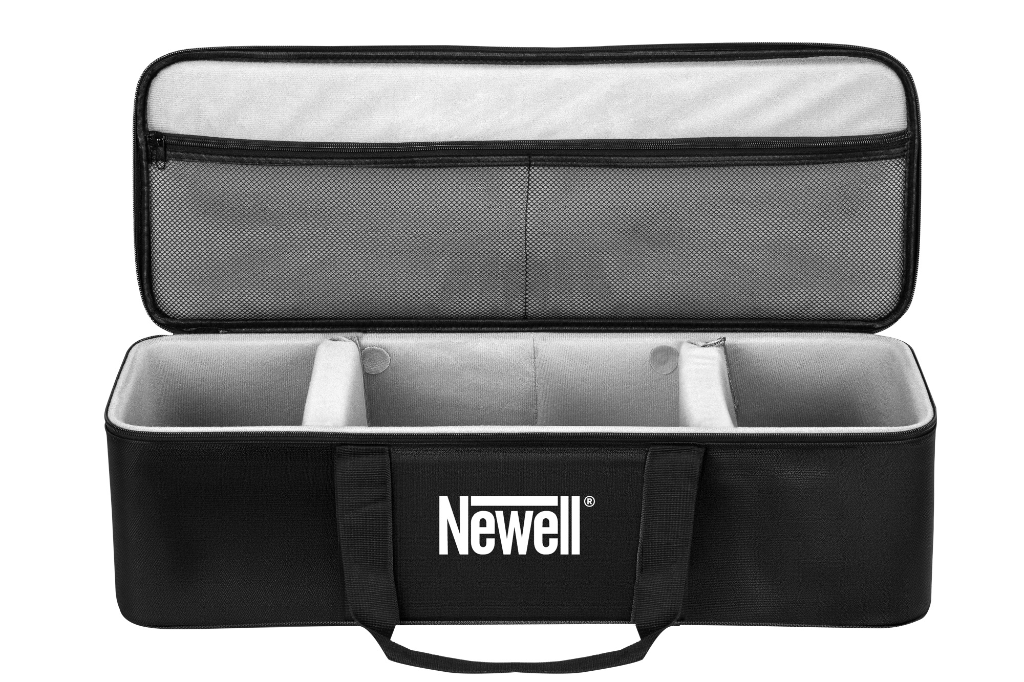 Torba transportowa Newell do lamp LED to niezawodne rozwiązanie dla fotografów, filmowców i innych twórców, którzy chcą bezpiecznie przewozić swój sprzęt. Wykonana z grubej, miękkiej pianki skutecznie chroni lampy i akcesoria przed wstrząsami, a delikatna wyściółka zapobiega zarysowaniom. Dzięki dwóm przegrodom na rzepy możesz łatwo dostosować wnętrze do swoich potrzeb, oddzielając poszczególne urządzenia lub akcesoria. Torba jest kompatybilna z lampami Newell Mitra i Surja, ale z powodzeniem pomieści również mniejsze panele LED i inny sprzęt foto-video. W klapie znajdziesz dwie siatkowe kieszenie na drobne akcesoria. Solidne suwaki i wygodne uchwyty zapewnią komfortowy transport w niemal każdych warunkach. Produkt objęty 40-miesięcznym programem wsparcia Newell.