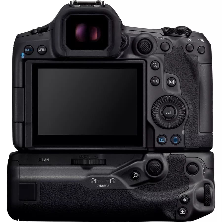 Uchwyt pionowy Canon BG-R20EP obsługuje łączność Ethernet 2.5GBase-T¹ oraz umożliwia dłuższą pracę z użyciem dwóch akumulatorów, które można ładować bez wyjmowania z aparatu. Obsługa przewodowej sieci LAN umożliwia fotografom prasowym, sportowym i modowym szybsze przesyłanie plików. Uchwyt poprawia również obsługę podczas fotografowania w pionie. Kształt multi-sterownika i położenie przycisków powiększenia, startu AF, blokady AF i wyboru punktu AF sprawiają, że obsługa w pionie jest podobna do fotografowania w poziomie. Uchwyt pionowy BG-R20EP cechuje się również dużą odpornością na pył i wilgoć, dzięki czemu można go używać w trudnych warunkach pogodowych.