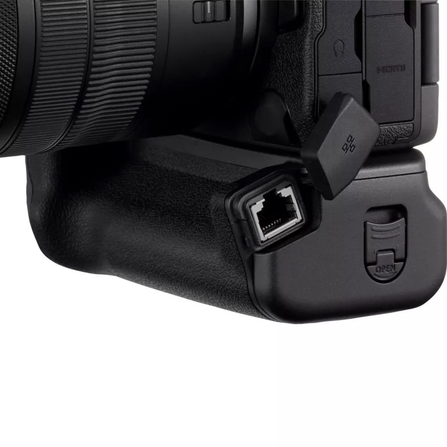 • Umożliwia użytkownikom aparatu EOS R5 Mark II korzystanie z portu Ethernet przy włączonym uchwycie akumulatora, dzięki czemu zapewnia dodatkowe opcje łączności i szybszy transfer danych.