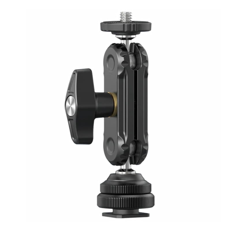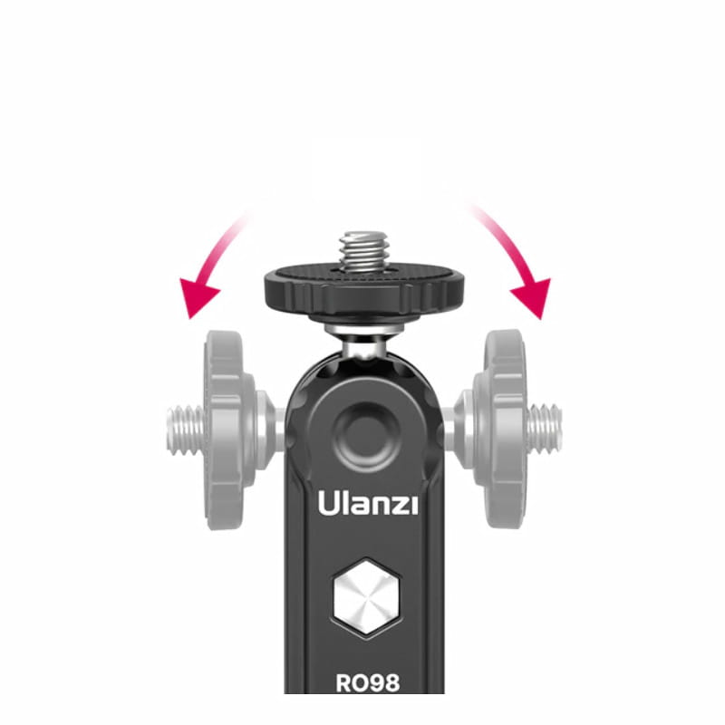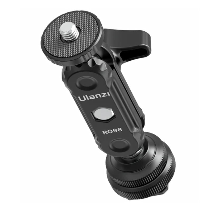 Wielofunkcyjny uchwyt przegubowy magic arm Ulanzi R098 o długości 10 cm, wykonany z lekkiego i wytrzymałego aluminium. Jest zakończony z jednej strony standardowym gwintem fotograficznym 1/4’’ oraz mocowaniem zimna stopka (cold shoe) z drugiej. To uniwersalne akcesorium foto-video, które z łatwością możemy zamontować bezpośrednio w gnieździe aparatu, a także w różnego rodzaju uchwytach, szynach montażowych czy klatkach operatorskich.