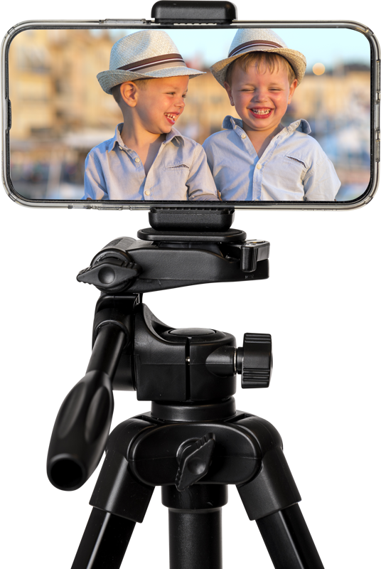 Lekki aluminiowy statyw z trójstronną głowicą obrotowo-uchylną i uchwytem na smartfona. Może osiągnąć maksymalną wysokość 123 cm i wytrzymać do 2 kg. Ten statyw jest idealny dla tych, którzy używają mniejszego aparatu lub smartfona.