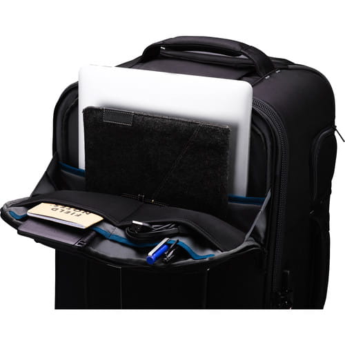 Poza możliwością wygodnego trzymania sprzętu fotograficznego, zamykany przedni kieszonkowy schowek zapewnia przechowywanie długopisów, wizytówek, paszportów, biletów lotniczych a także małych urządzeń elektronicznych i obejmuje wyściełaną przegrodę z wewnętrznym dzielnikiem dla laptopa do 17”. Kieszeń jest tak umiejscowiona, że jego zawartość może być łatwo dostępna. Cztery uchwyty zostały dodane z myślą o łatwiejszym przenoszeniu walizki.
