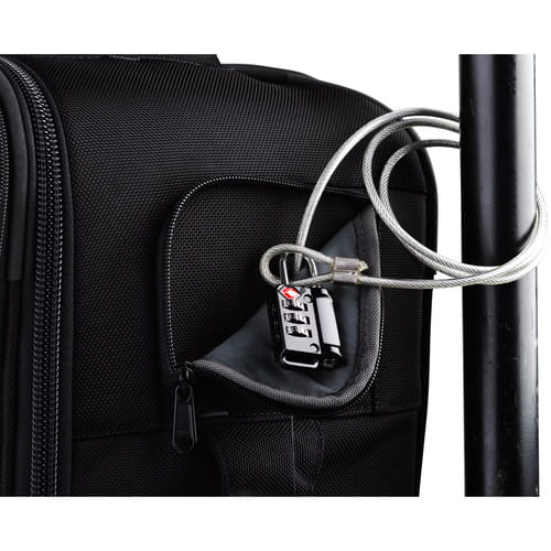 - Zatwierdzona przez TSA kombinacja zamka błyskawicznego zabezpiecza główny dostęp do produktów przechowywanych w walizce.