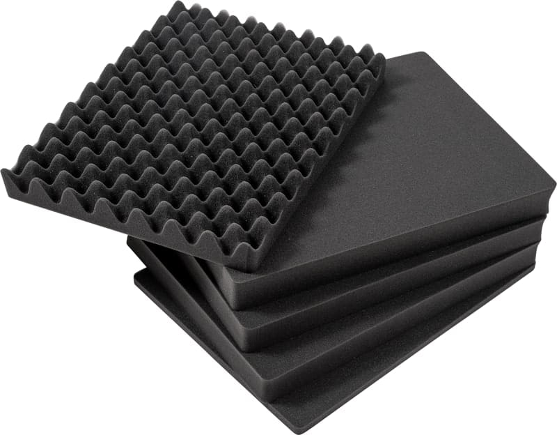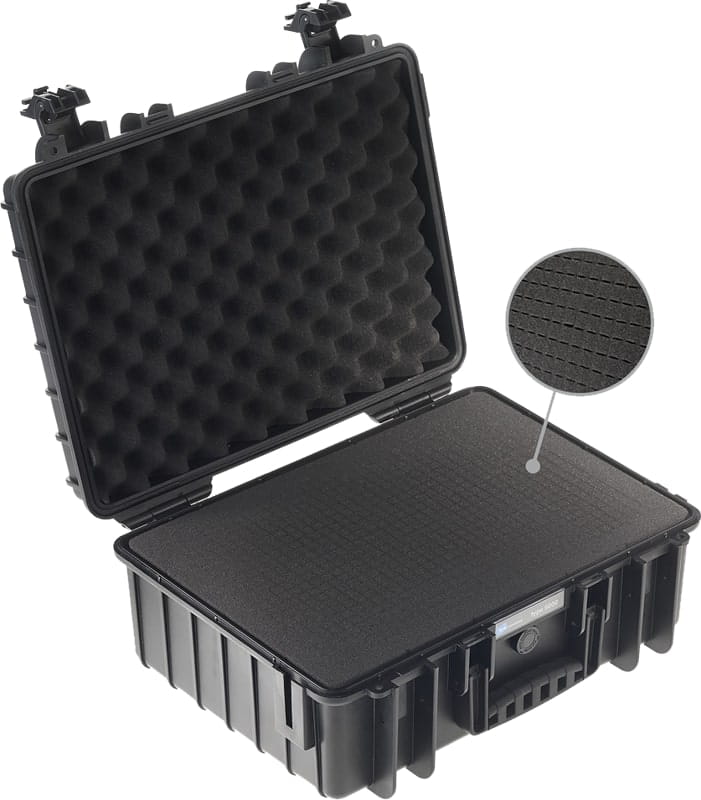 Specjalny wkład z gąbki przeznaczony do walizki B&W Typ 5000. Wstępnie nacięte kostki o kwadratowym przekroju usuwa się (wyrywa) dostosowując dowolnie kształt przegrody do kształtu przedmiotu, który ma być umieszczony w walizce. Pokrywa walizki jest wykonana z gąbki falowanej i zapewnia ochronę zawartości przed wstrząsami.