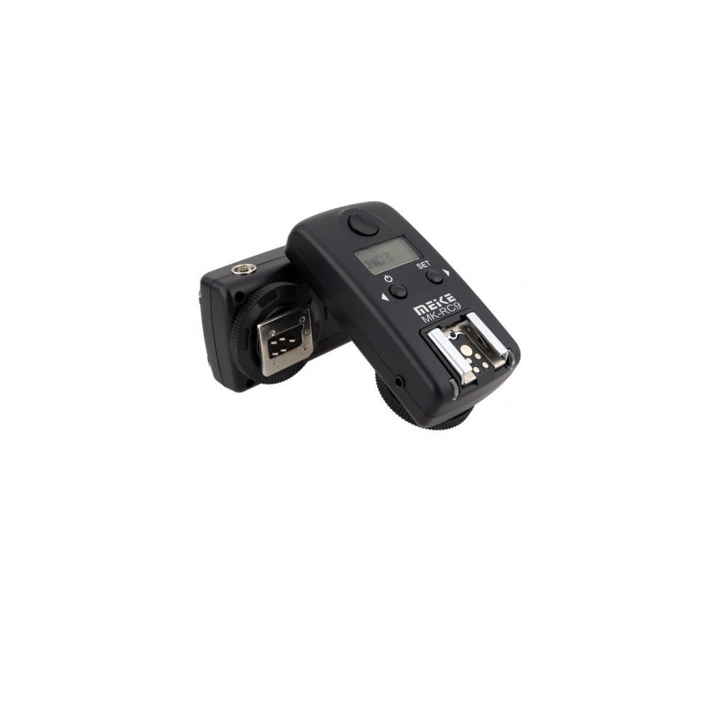 Meike MK-RC9 to lekki i poręczny zestaw do zdalnego wyzwalania migawki oraz reporterskich i studyjnych lamp błyskowych. Zaprojektowany do aparatów Nikon i aparatów z gniazdem MC-DC1.W skład zestawu wchodzą dwa urządzenia które mogą zamiennie pełnić rolę nadajnika i odbiornika. Piloty wyposażone są w podświetlany ekran LCD z funkcją oszczędzania energii. Na ekranie wyświetlana jest informacja o aktualnie wybranym kanale.System obsługujący częstotliwości 2.4GHz z modulacją FSK umożliwia wybór spośród 99 kanałów radiowych. Powoduje to brak zakłóceń i pozwala na swobodną pracę w przypadku używania kilku wyzwalaczy.Zasięg działania urządzenia wynosi do 100 metrów i co ważne, działa równie dobrze w zamkniętych pomieszczeniach (także rozdzielonych ścianą).Do podłączenia lamp błyskowych służą sanki ISO ze stykami oraz gniazdo synchronizacyjne PC. Każde z urządzeń zostało taże wyposażone w dwustopniowy przycisk uruchamiający system AF i wyzwalający migawkę aparatu.Urządzenie zasilanie jest 4 bateriami AAA (w zestawie).Do każdego zestawu dołączone jest okablowanie pozwalające w pełni wykorzystać możliwości wyzwalacza z wybranym modelem aparatu i lampy studyjnej.Dodatkowe dane techniczne: