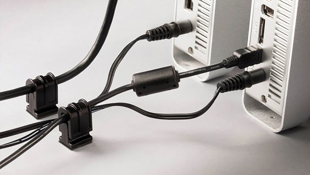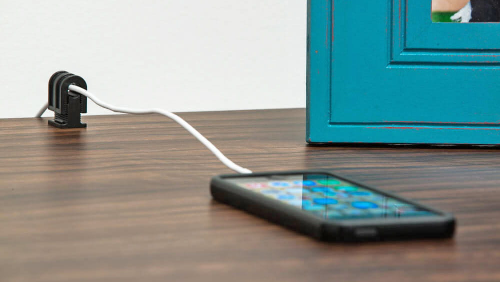 Kabel przymocowany za pomocą zabezpieczenia JerkStopper pozostaje na powierzchni blatu zamiast spadać za biurko. Dzięki temu unikniesz irytujących sytuacji, gdy konieczne jest uciążliwe sięganie po kabel, który najczęściej spada w trudno dostępne miejsca. Zabezpieczenie jest kompatybilne z dowolnym standardowym kablem o średnicy w zakresie od 3,5 mm do 8,5 mm.