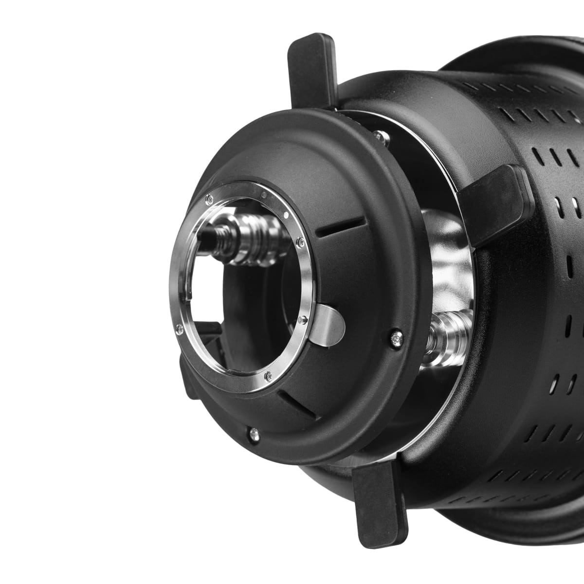 - Fabrycznie wyposażona w uchwyt typu Bowens, który może być wymieniony na mocowanie do lamp Profoto, Broncolor lub Elinchrom (bagnety dostępne są oddzielnie).