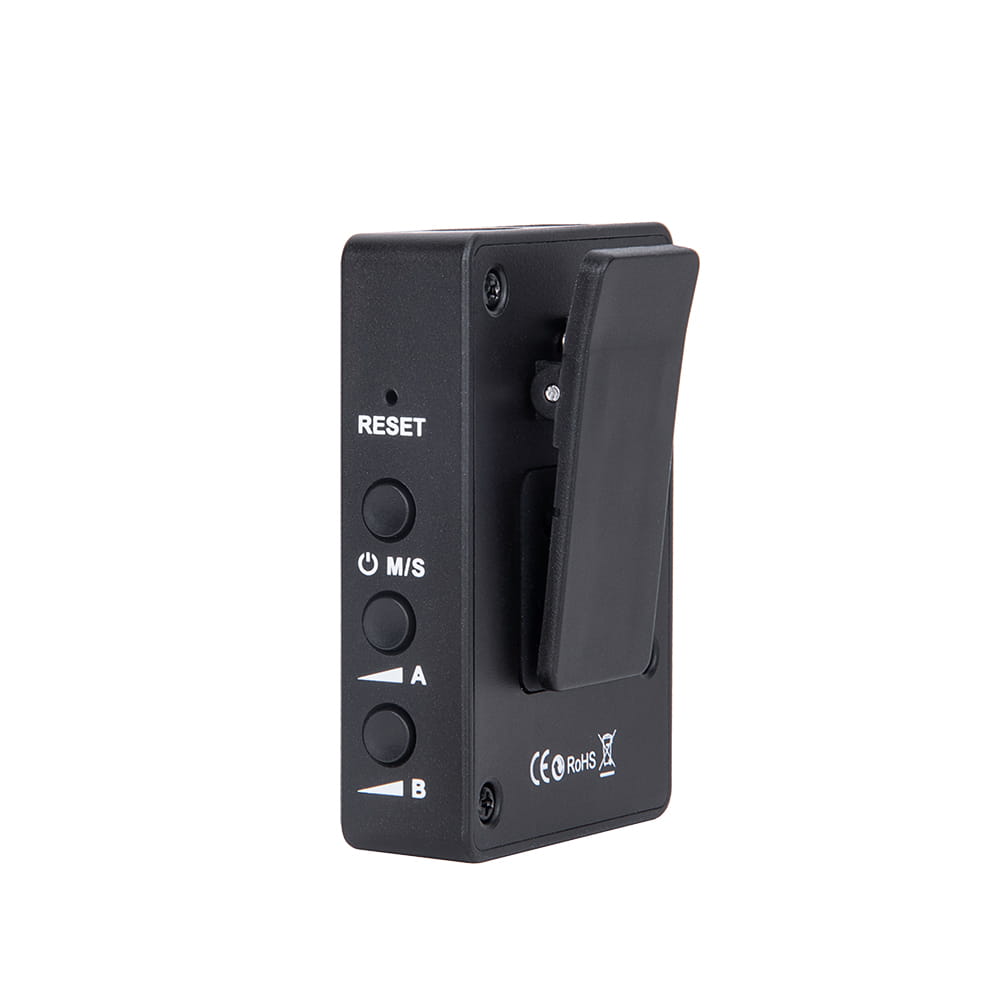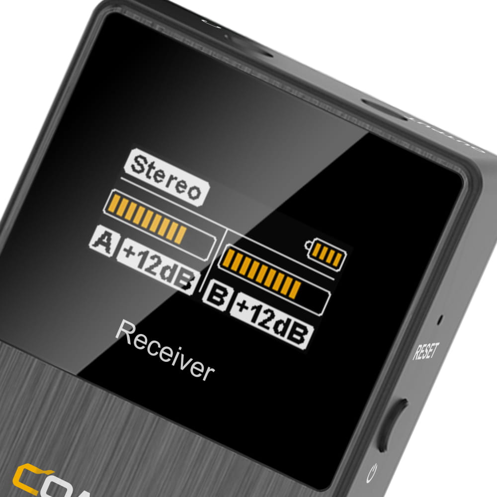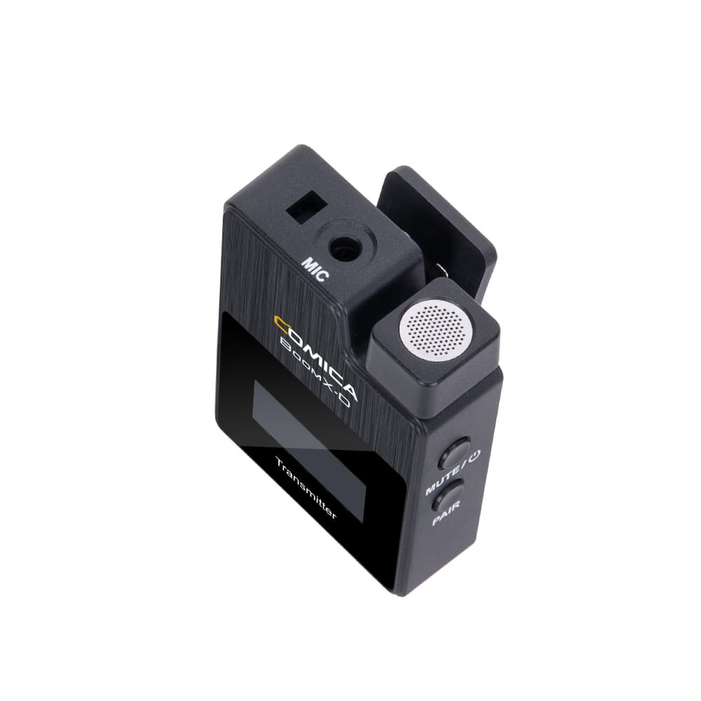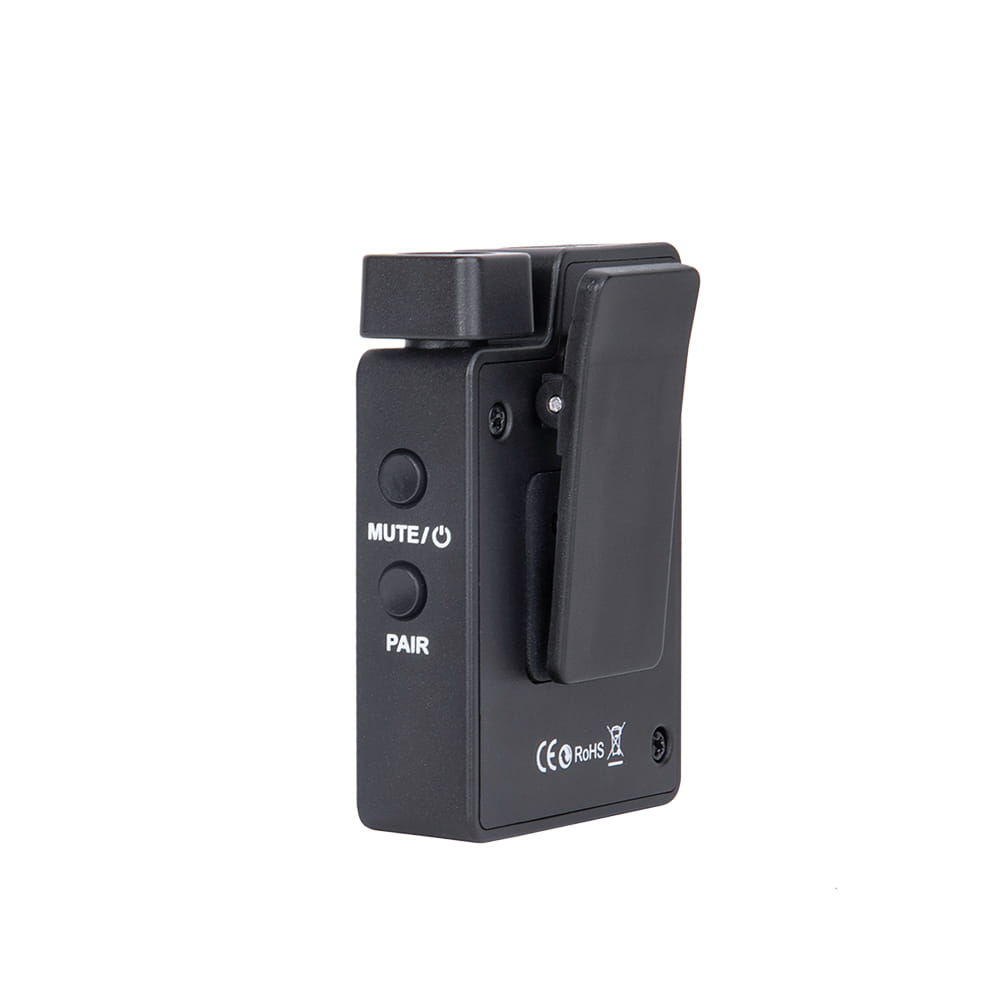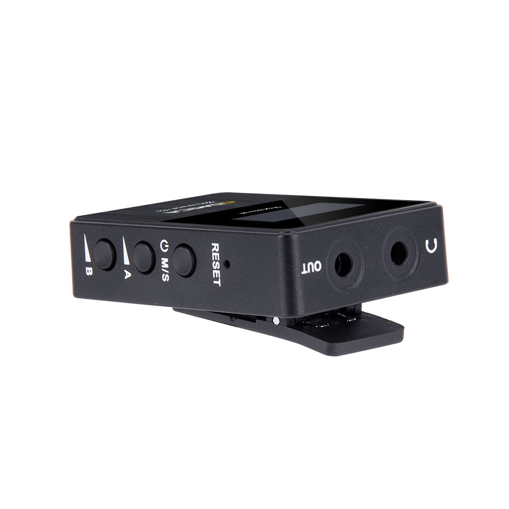 Nadajnik posiada wbudowany mikrofon oraz wejście mikrofonowe 3,5mm do którego można podłączyć mikrofon krawatowy. Nadajnik pełniąc rolę mikrofonu może być przypięty do ubrania lub nawet trzymać go w dłoni jako ręczny mikrofon. Odbiornik i nadajnik są fabrycznie sparowane i działają na zasadzie Plug-in-Play. Oba urządzenia mają wysokiej jakości wyświetlacz na którym możemy odczytać informacje na temat żywotności baterii, siły sygnału, poziomu dzwięku i i konfiguracji mono/stereo.