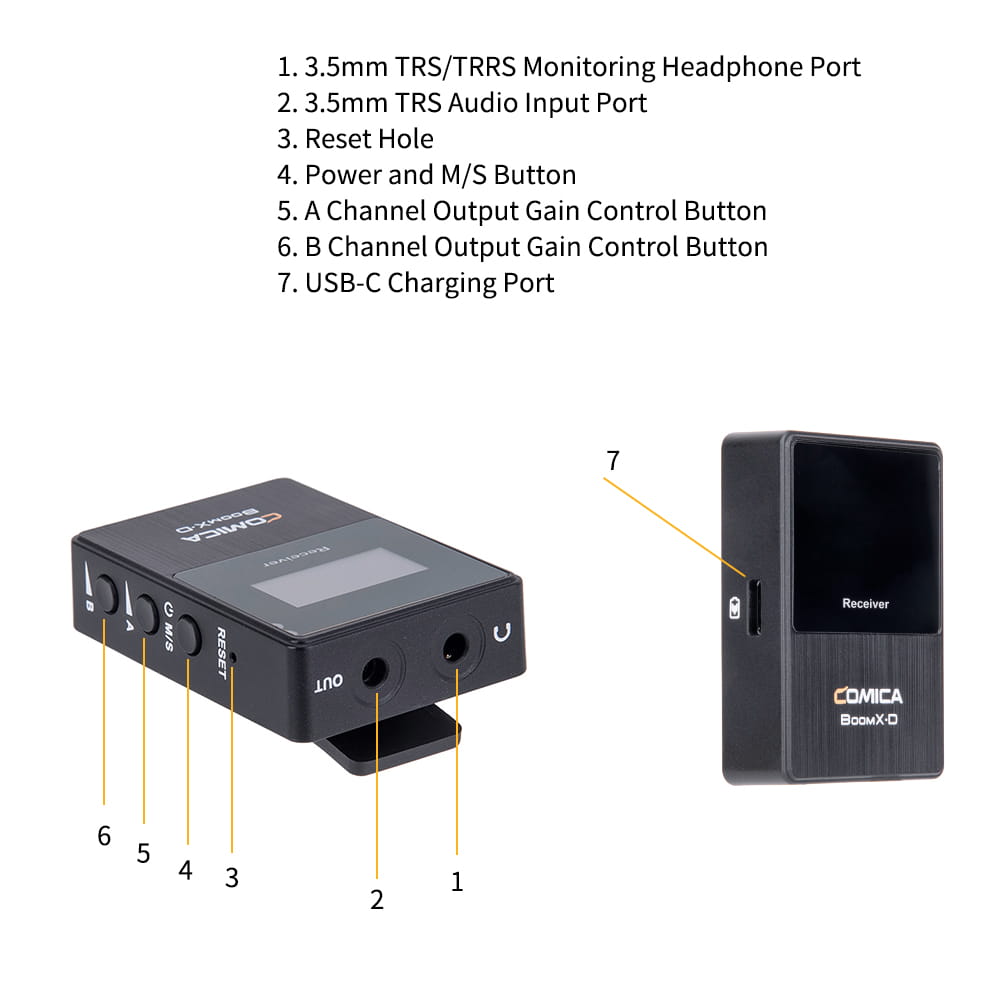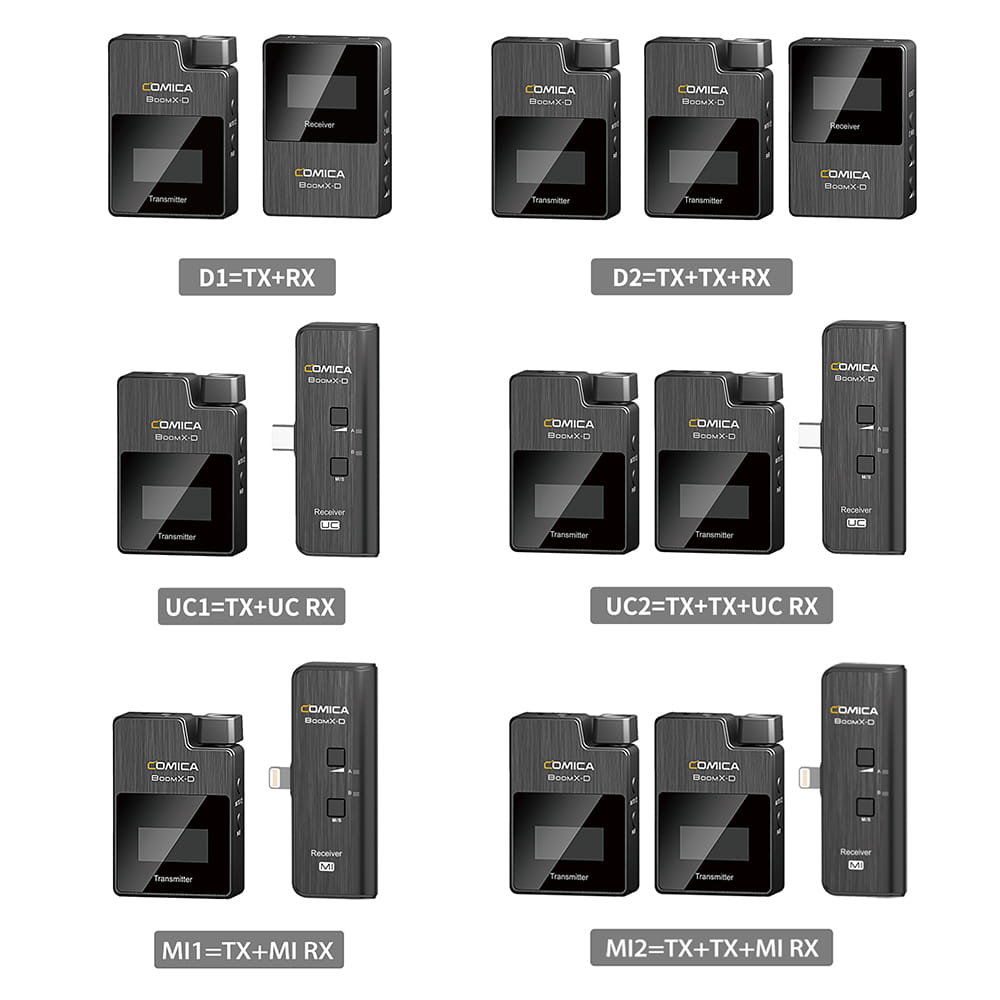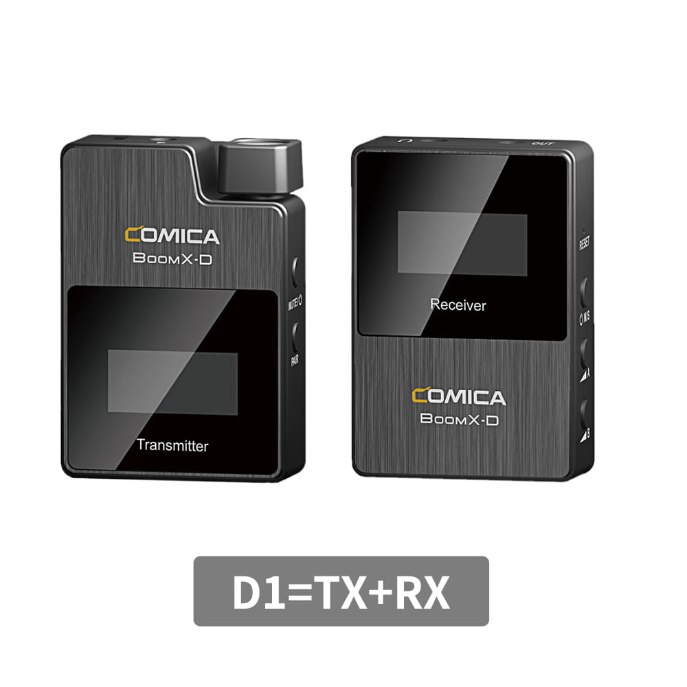 BoomX-D D1 składa się z ultra kompaktowego nadajnika z własnym wbudowanym mikrofonem do okólnym i oddzielnym mikrofonem krawatowym oraz odbiornika dwu kanałowego. Urządzenia posiadają wbudowane akumulatory które pozwalają na ciągłą pracę do 5 godzin.